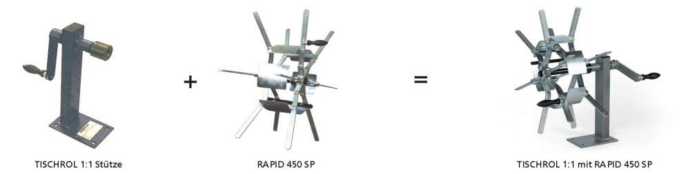 Übersetzung zwischen Kurbeldrehzahl und Wickeldrehzahl 1:1 oder 1:3